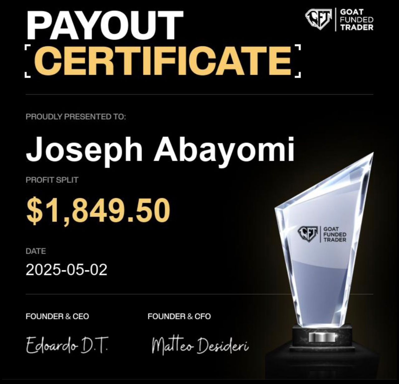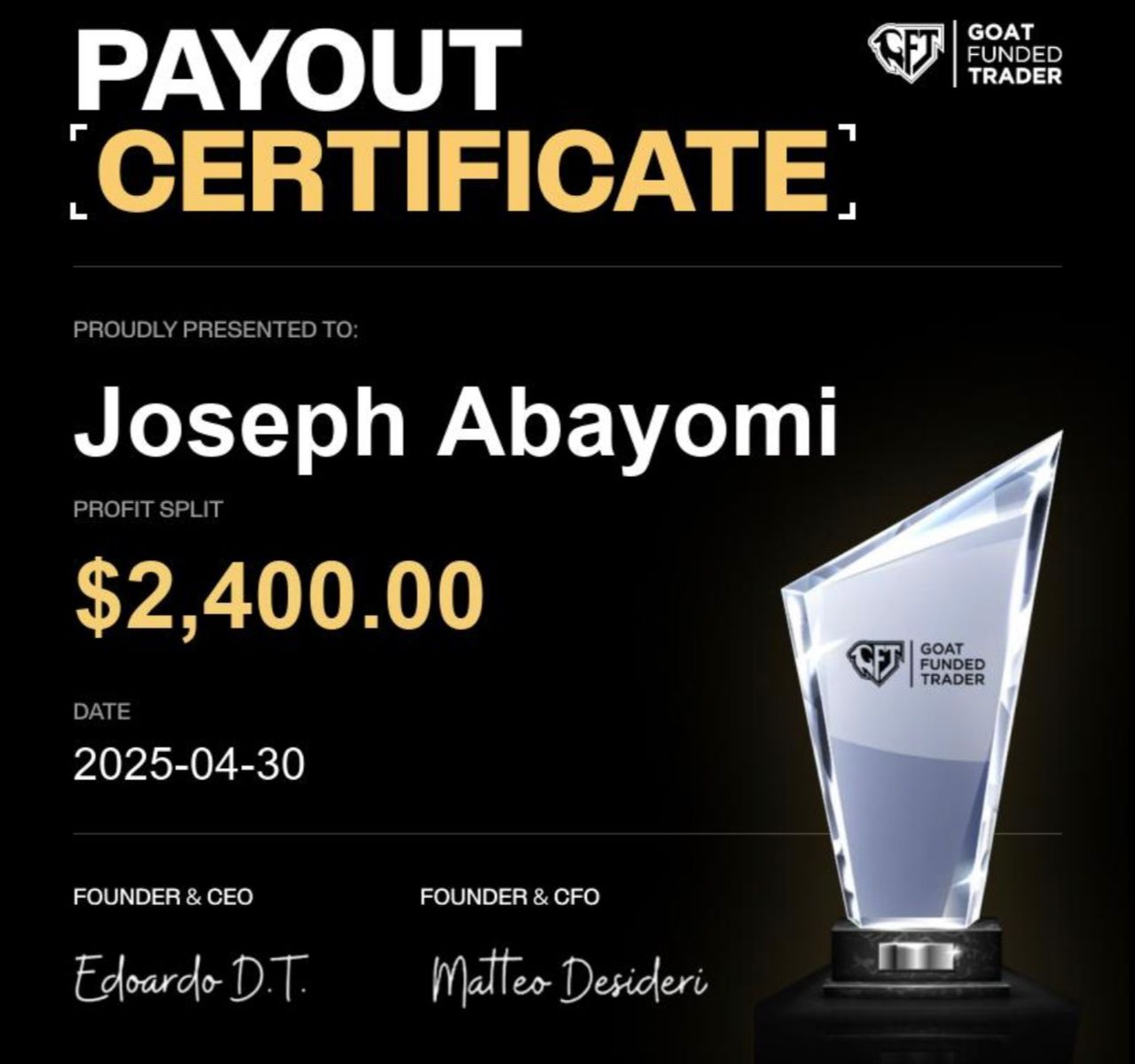 Success isn’t found in avoiding difficulty, but in overcoming it. Joseph Abayomi, founder of Covenant TraderFX embodies this tenacious spirit, proving that his relentless focus and willingness to pass every obstacle are the keys to completing this rigorous challenge. This milestone not only highlights his immense talent as a great trader but also establishes him as a guiding mentor, showing others how to turn challenges into profound professional achievements.