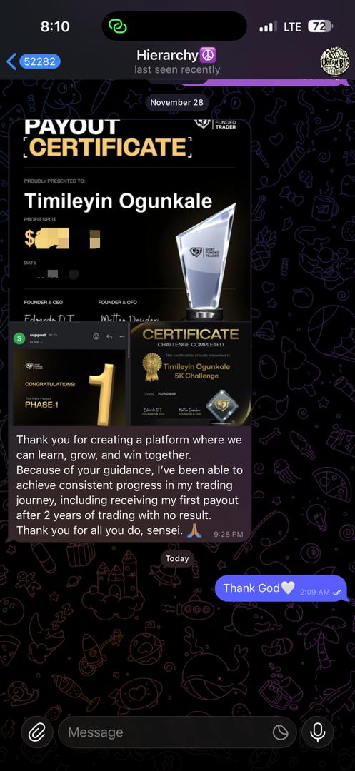 Beyond trading, I’ve been able to invest wisely and do other beautiful things for myself.. all from the foundation your guidance laid.
